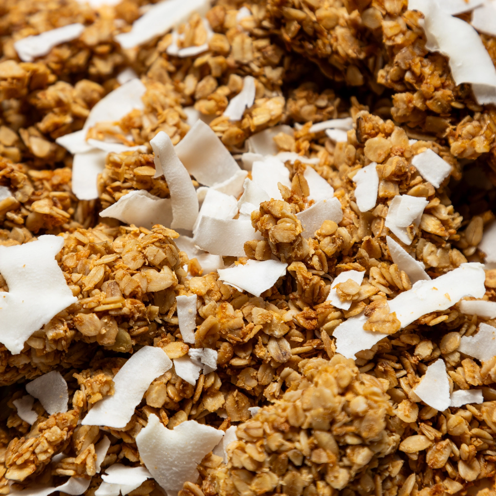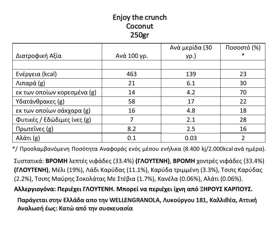 Νιφάδες βρώμης, ελληνικό μέλι, λάδι καρύδας, ινδοκάρυδο, σταγόνες σοκολάτας υγείας, χοντρό αλάτι