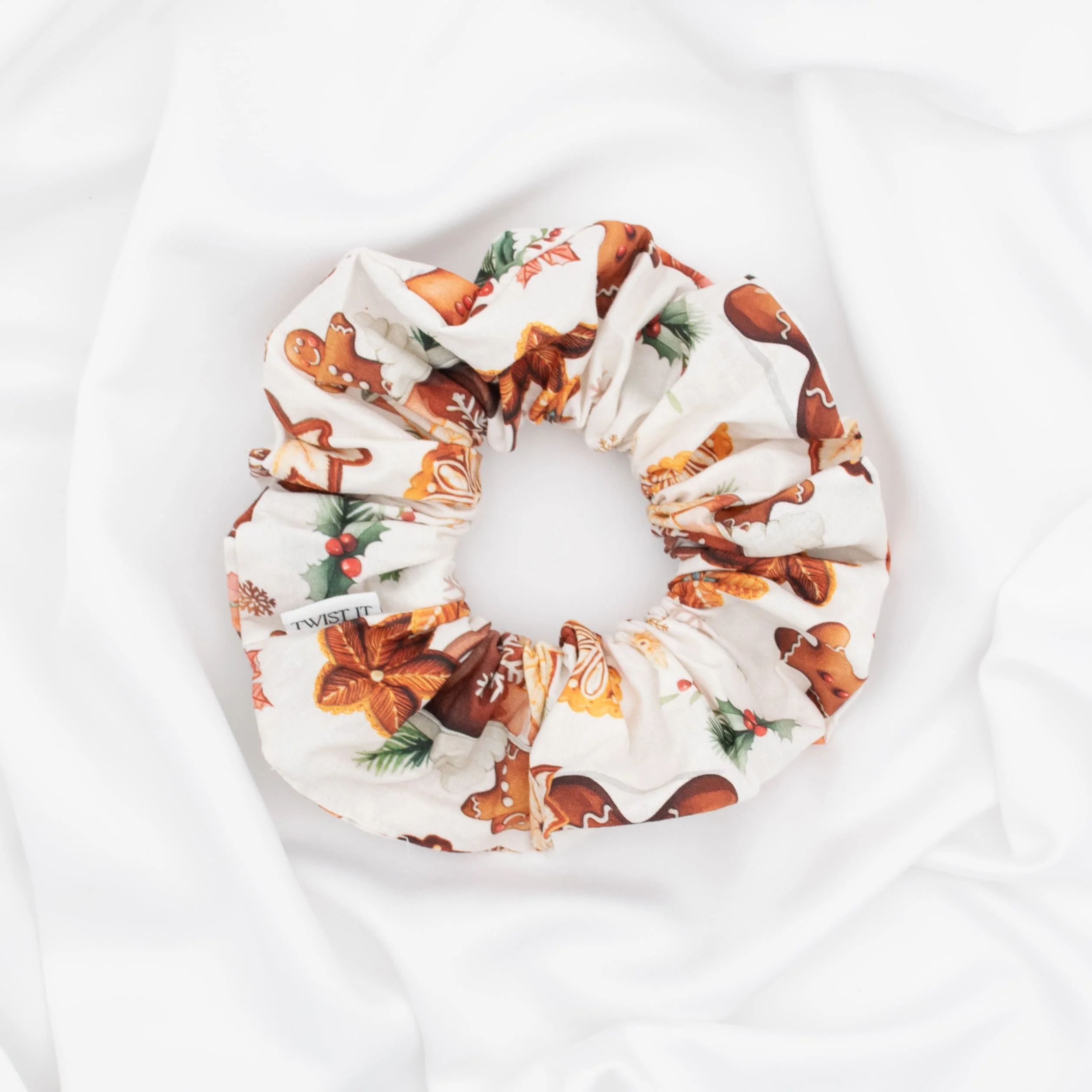 Είναι χειροποίητο στην Ελλάδα, από 100% vegan βαμβακερό ύφασμα σε ένα χριστουγεννιάτικο σχέδιο με μπισκότα και ιδανικό για όλους τους τύπους μαλλιών.