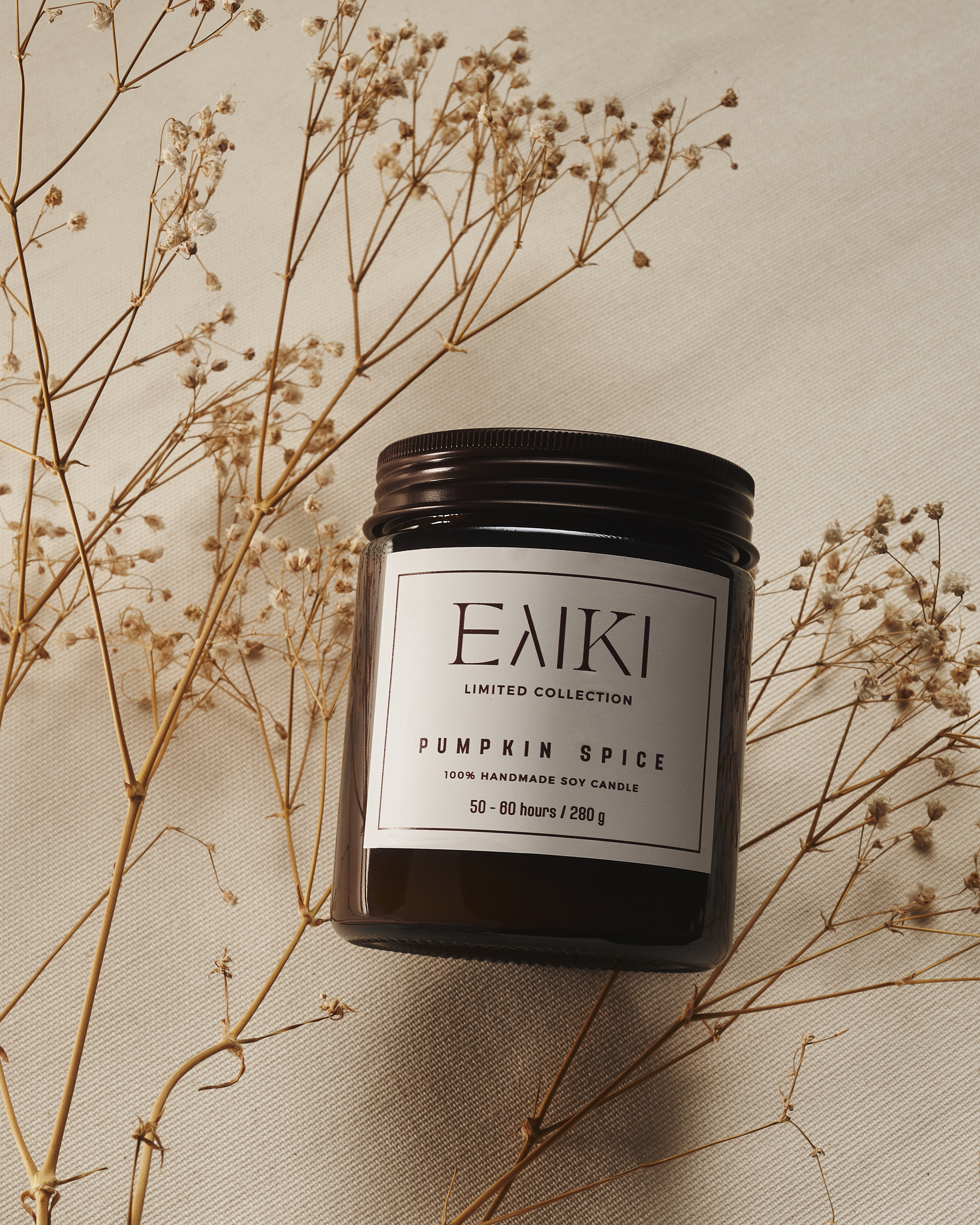 Χειροποίητο κερί σόγιας 280 gr με ξύλινο φυτίλι, σε καραμελέ γυάλινο δοχείο με ματ καπάκι.