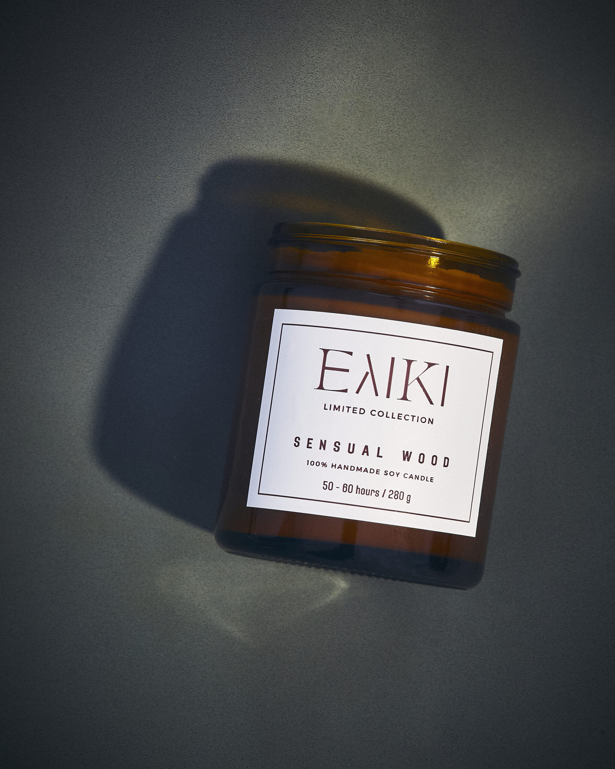 Χειροποίητο κερί σόγιας 280 gr με ξύλινο φυτίλι, σε καραμελέ γυάλινο δοχείο με ματ καπάκι.